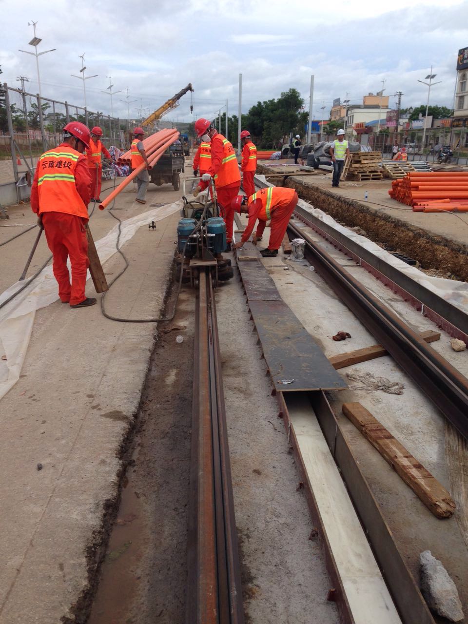供货合同确定以后,轨道工程公司领导迅速组织技术、质量、供应、工程等相关部门就线路应用方案进行专题研究,人、机、料、法、测全部准备到位,2016年7月1日开始配合安装公司进行安装。截止到7月12日上午,雨过铺左、右线各100米嵌入式轨道系统钢制承轨槽已全部安装完毕,目前正在通过监理验收。同时,已顺利完成高分子A、B料的取样工作,并开始右线混凝土浇筑。