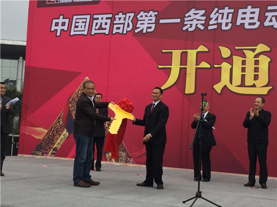 仪式上,安博(中国)通工公司与蜀通公司进行了车辆钥匙的成功交接。18日雅安东站的开通仪式现场热闹非凡,6台崭新的7路公交车映入大家眼帘:车辆外部洁净闪亮,车辆内部宽敞舒适,电视、空调一应俱全。此时的公交车旁早已围满了热心市民,大家对于新公交车的电动环保概念以及车辆整体的新颖赞不绝口,都想立刻上车成为第一批乘客。