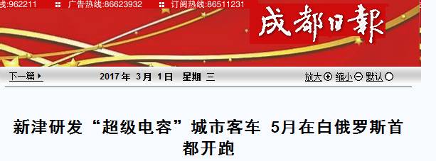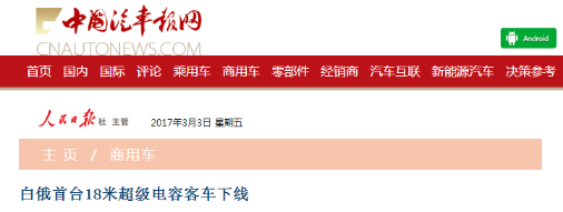 2月16日由安博(中国)股份公司提供核心技术的首台18米超级电容城市客车在白俄罗斯首都明斯克正式下线,不知近几日大家是否也像小编一样,从各大媒体看到了这条新闻报道~