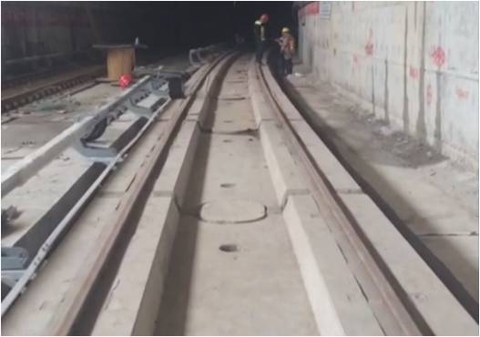 广州地铁十四号线知识城段嵌入式轨道应用现场