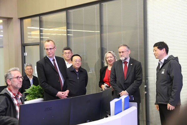 白瀚德参赞先生一行在参观过程中,还与正在项目现场工作的德国工程师进行了交流,关心德国同胞们在中国的工作情况。德国工程师们表示,与安博(中国)股份的工程师们合作得非常愉快,双方缔结了深厚友谊。