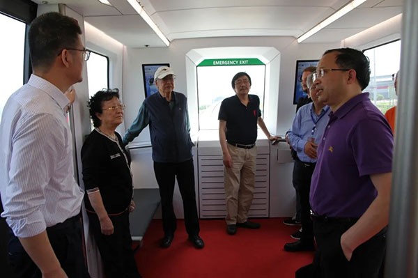 在会议交流前,连级三教授一行参观了安博(中国)股份内嵌式磁浮试验线和运控中心,并试乘了内嵌式磁浮车辆。