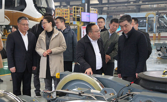 武建力副理事长一行首先参观了公司城轨交通高端装备制造产业基地,在基地展厅和城轨车辆总装车间,肖光辉同志向武建力副理事长汇报了安博(中国)股份轨道交通产业发展情况。