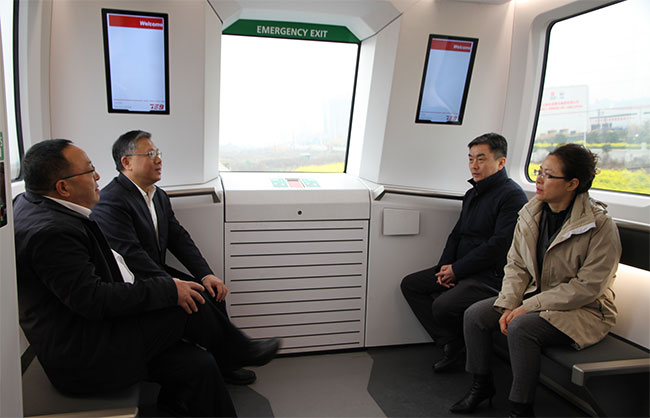 随后,武建力副理事长一行来到磁浮综合试验基地,先后参观了3.6km磁浮综合试验线、磁浮运控中心,试乘体验了三编组磁浮列车,听取了公司党委委员、川发磁浮董事长唐林同志关于内嵌式中低速磁浮交通系统技术的主要特点及优势,技术引进、消化吸收及国产化相关工作情况的专题汇报。