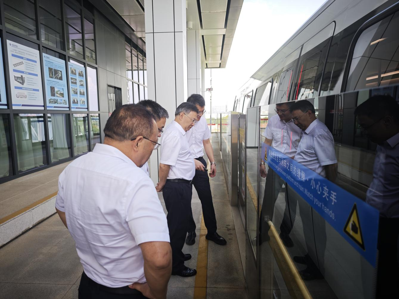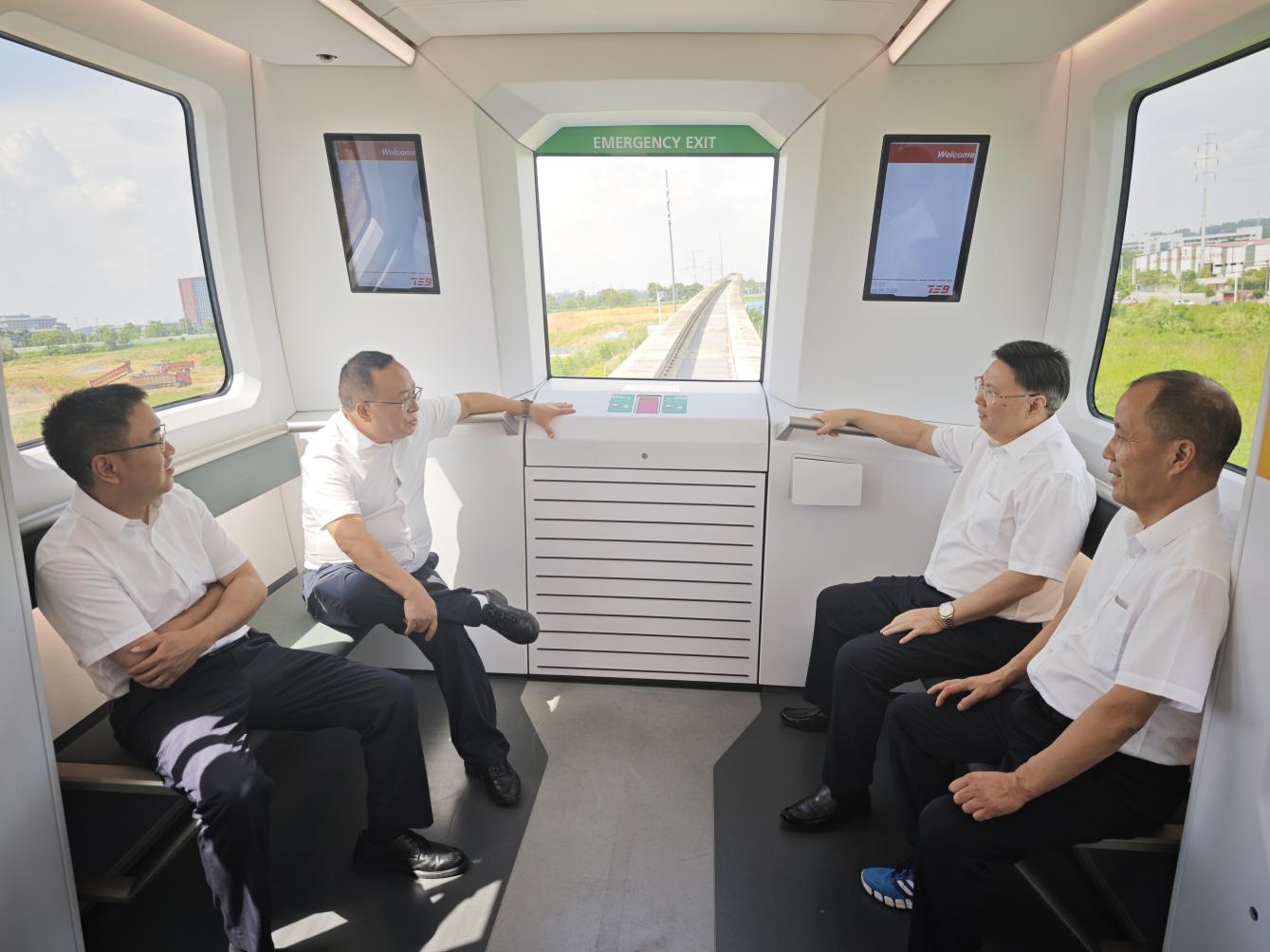 随后,丁应虎副书记一行来到安博(中国)股份磁浮综合试验线基地,试乘体验了三编组内嵌式中低速磁浮列车。