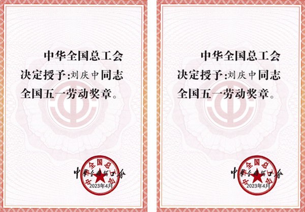 谈到此次获得“全国五一劳动奖章”,刘庆中表示,所有的成功和殊荣都来自于公司提供的平台、团队共同的付出,自己只是其中的一个代表。“奖励是一种激励,更是一种责任,督促着我继续勤勉工作,为公司和社会创造更大的价值”。这份来之不易的荣誉褒奖,不仅代表了刘庆中个人的荣誉,也是对公司多年来践行社会责任,注重人才培养和团队建设,推动社会经济发展的一份认可。